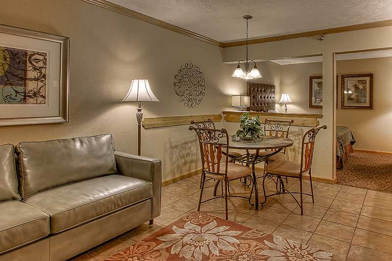 sofa and dining table in suite at Willow Brook Lodge