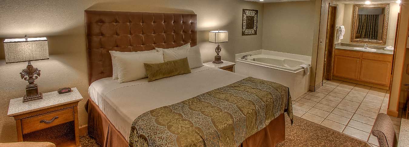 King bed in jacuzzi suite at Willow Brook Lodge in Pigeon Forge Tn